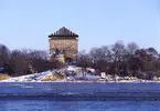 Byggnader på Stumholmen bl a Epidemisjukhuset gula villan. samt fyren