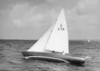 "5-met. Rima. Äg. Sten Nordenskiöld. Konstr. Erik Salander. Byggd å Tynningö Yachtvarv 1937. E. Salander foto."