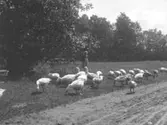 Marit Liljefors matar ankor vid stranden, sannolikt i Stavanger, Norge