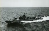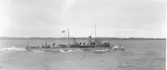 Bilden visar torpedbåten Antares till sjöss från styrbordssidan.