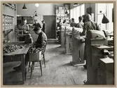 Postmästare Allan Ullemo på postkontoret i Tidaholm år 1961. Pakethantering.