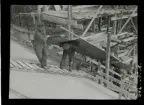 Två män med utrustning för ljudupptagning. Skansen, Stockholm.