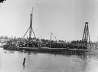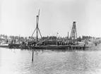 Interiör av Albin Marins monteringsfabrik. Albin Vega under byggnad.