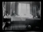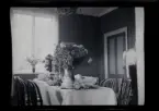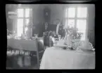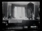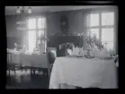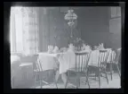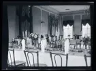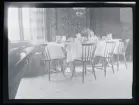 Hushållsfröken Lindkvist vid det dukade bordet i frukostrummet på Tyresö slott.