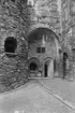 Enligt fotografens noteringar: "Från inre borggården." Plats: Gripsholm Datum: 29 Juni 1897 Tid: Kl 2.15 e.m. Ljus: Solsken Bländare: No 2 Objektiv: Svenska Express Exponering: Hastighet No: 2 Framkallning: Hydroechinon, Eikonogen Anmärkningar: "Vackert men hål i Kameran !"