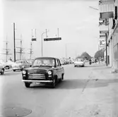 Bilden är tagen från Borgmästaregatan över Stora Torget och upp på Domkyrkogatan. Till höger i bild syns först reklam för en Sko- reparationsverkstad och sedan skylten till Café Java. Ute på Stora Torget står en bil samt en cykel parkerade. På Domkyrkogatan finns ännu ett Café och utanför går några personer. I bakgrunden ser man Domkyrkotornet.
