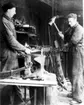 På bilden ser vi troligen sonen Karl 13 år, sonen Edvard 21 år, Karl Mårtensson 50 år och hustrun Anna Kristina 47 år. Alla har redskap i händerna, det var otänkbart att framstå som sysslolös!