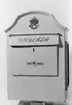 Brevlåda för allmänheten av koppar, beställd av Grängesbergsbolaget och uppsatt på dess fastighet Gustav Adolfs torg 18, Stockholm.