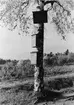 Brevlåda för Klastorp, Kungsholmen, Stockholm. Posten inlägges på ena sidan om det plank, vari brevlådan är anbragt och hämtas på andra sidan. I lådan har en fågel sitt bo sedan 2 år tillbaka.