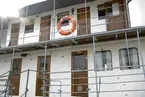 Henrik Gustafsson dirigerar kranskötaren. Däckshuset sänkes de sista centimeterna till rätt läge.