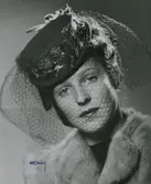 "Hermine Schattenfroh". Hatt med kulle och litet brätte. Brättet dekorerat med fjädrar, flor.