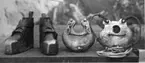 Tillfälliga utställningen "Dykeri och bärgning". Dykeriutrustning från 1800-talets mitt. Delad dykardräkt för mindre vattendjup, dykarpump av äldre modell m.m.