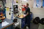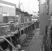 Dykutrustning och övrigt materiel lastas ur innan båtarna drages upp på land efter dagens dykningar.