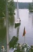 RAMSÖ lägger till vid Boda brygga. Väntande passagerare på bryggan. Skärgårdsprojektet 2003-2004 Fotodatum 9 mars 2004