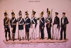 Torpedbåten Blixt i Uddevalla den 11 juni 1913. Ombord på Blixt fr.v.: Mattsson maskinist, Bergström styrman, Zetterberg hovrättsråd.