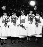 Kreaturförsäkringsbolagets 60-årsjubileum. Tre kvinnor i folkdräkt.