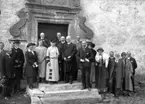 Landshövding Nils Edén med okänd man utanför Valö kyrka under Upplands fornminnesförenings höstutflykt