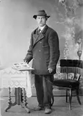 inv.nr. 86879. Postmästare Tage Broberg. S. J. Ölander, f. 1845, drev fotoateljé i Filipstad, Molkom, Kyrkheden, Munkfors, Ekshärad och Loka. Firman etablerades 1869.
