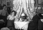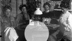 Kaffe kl 1 på natten i Lillviken, Norrbotten, vid kaffebordet, från vänster Edvin Fjällman med fru Edla Fjällman, Bengt Helamb och lantbrevbärare Hugo Lundmark.
