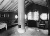 Modell av pojamafartyget BRYNHILDA (1776) i Sjöhistoriska museets utställning Klart skepp. Detalj.