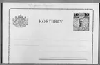 Foton 17/8 1967. Brev- och postkort. Postkort (brevkort) 1951 med tidigare komposition (lilla riksvapnet) och ny siffertyp. Därunder 1952 års komposition med tre kronor till vänster.