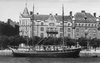 Foto i svartvitt visande Strandvägskajen, Stockholm, 1934.