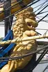 Modell av turumafartyget LODBROK (1771) i Sjöhistoriska museets utställning Klart skepp. Detalj, galjonsbild.