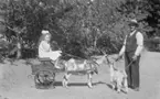 Skioptikonbild med motiv av man med kärra dragen av getter. Bilden har förvarats i kartong märkt: Vårresan 1909. Einbeck 5. Rottleberode 1. Stolberg 1. VIII. Text på bild: "Rottleberode im Harz".