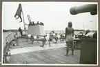 Flaggan hissas under gymnastikuppvisningen vid invigningen Örebro 700 år, 1965