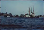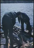 Bärgningsledare Axel Hedberg i mitten till vänster och längst till vänster Edward Clason.