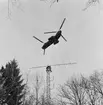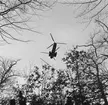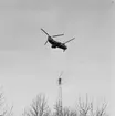 På bilden syns en helikopter HKP 2 svävande över marken på Gålö.