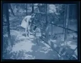 "Hilmer Vahlström, Väsby." En man och ett litet barn matar ankor.