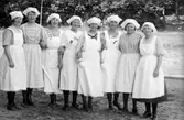 En luciakör står på golvet i en samlingslokal och sjunger. De bär vita skrudar och täcker håret med huvudduk. I mitten står lucian med en krona prydd av ris och levande ljus. Runt omkring dem sitter finklädda åhörare.