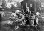 "På cykeltur med bil, båt och tåg". Sannolikt elever vid Vänersborgs högre läroverk för kvinnlig ungdom
