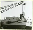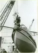 Isbrytaren SANKT ERIK. Maskinchef Kark Einar Andersson arbetar men bogserspelet.