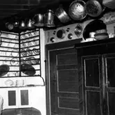 Hembygdsgård. Holm. Interiör. Spis, köksredskap.