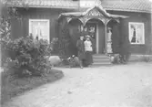 Komministergården Varv. På trappan: Prosten Otto Hermansson Skövde med fru. Nedanför trappan: Prosten Magnus Hermansson Forshem med fru. Till höger fröken Lampa. Lampa, Sven, 1839-1914, zoolog, entomolog, ursprungligen jordbrukare, professor och föreståndare för entomologiska avdelningen vid Centralanstalten för försöksväsendet på jordbruksområdet 1897-1909. Lampa spelade en viktig roll för den svenska entomologins utveckling. http://www.ne.se/jsp/search/article.jsp?i_art_id=236996