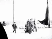 Kronprinsparet Gustav Adolf och Louise samt ärkebiskop Nathan Söderblom, med följe, inne på ärkebiskopsgården. Uppsala 1920-tal