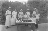 Konsum, charkuteriavdelningen, korvtillverkning, fyra kvinnor.
