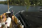 Mattan av tjära, huggspån och kvistar med mera syns på del av skrovet. Det är det yttre, påspikade skrovet av furu som syns frilagt höger i bild.