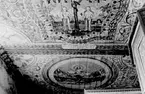 S:t Olofs kyrka. Tidigare överstruken takmålning under läktaren, före konserveringen. Nu uppsatt i sakristian. Frilagd takmålning från 1700-talets mitt. Inskriptionen å bandet: "Bevara thin fot när tu går till Gudz hus och kom til att höra".
