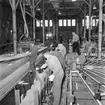 Inpassning av nytillverkad del av stomme som skarvas ihop med äldre stomme på gavelsida.