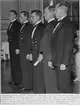 "Olympiasegrarna hyllas. Kungliga Svenska Segelsällskapet hyllade de framgångsrika svenska seglarna i Los Angeles. Här ovan hedersgästerna uppställda på ett led framför styrelsebordet. Närmast kameran Sven Thorell, sedan Martin Hindorff, Tore Holm, Olle Åkerlund och Åke Bergqvist. Civilingeniör [sic] Tore Holm fick K.S.S.S. guldmedalj."