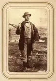 Samisk man med spjut. Per Olof Amundsson Länta, 27 år från Sirkas sameby i Jokkmokks socken. Ur Lotten von Dübens fotoalbum med motiv från den etnologiska expedition till Lappland som leddes av hennes make Gustaf von Düben 1868.
