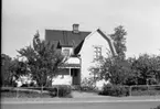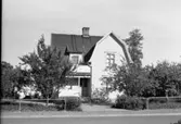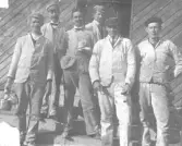 Enligt senare noteringar: "Munkedals Konsumtionsförenings nybyggda affär i stationssamhället. Målarna är från vänster Elof Brink, målarlärling, Karl Strid och Oskar Ström, målarmästare. Enligt uppgifter Elof Brinks första arbete som målarlärling vid 14 års ålder (f. 1916). Affären ersattes av en ny Konsumhall 1975, vilken byggdes bredvid den gamla. Huset på bilden inrymmer idag en textil och en modebutik." (BJ)