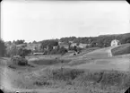 Vommedal c:a 1930. Vita huset till vänster Villa Anneberg, Steteredsvägen. I mitten "Olas" Vommedal Östergård. Gustav Johanssons smedja, Kyrkvägen. Från "Hilmabacken". Samma foto som A0232.
