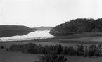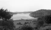 Text som medföljde bilden: "1935. Taget ute! Utsikt öfver Saltkällans Herrgård o. gamla Saltkällans Ångbåtsbrygga och Marknadsplatsen." Uppgifter från Munkedals HBF: "Saltkällan. Saltkällans säteri. Saltkällefjorden. Fotografen har stått på Skredsvikslandet".