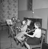 cello, män, man, grupporträtt, trummor, kostym, notställ, fiol, orkester