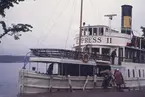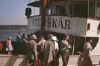Ombordstigning på S/S Bore från isen i Furusundsleden. Båten är lastad med post och gods från Finland.