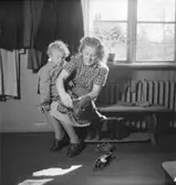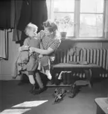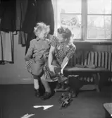 "Påklädning av en pojke", Djursholm Kvinna och pojke Interiör
